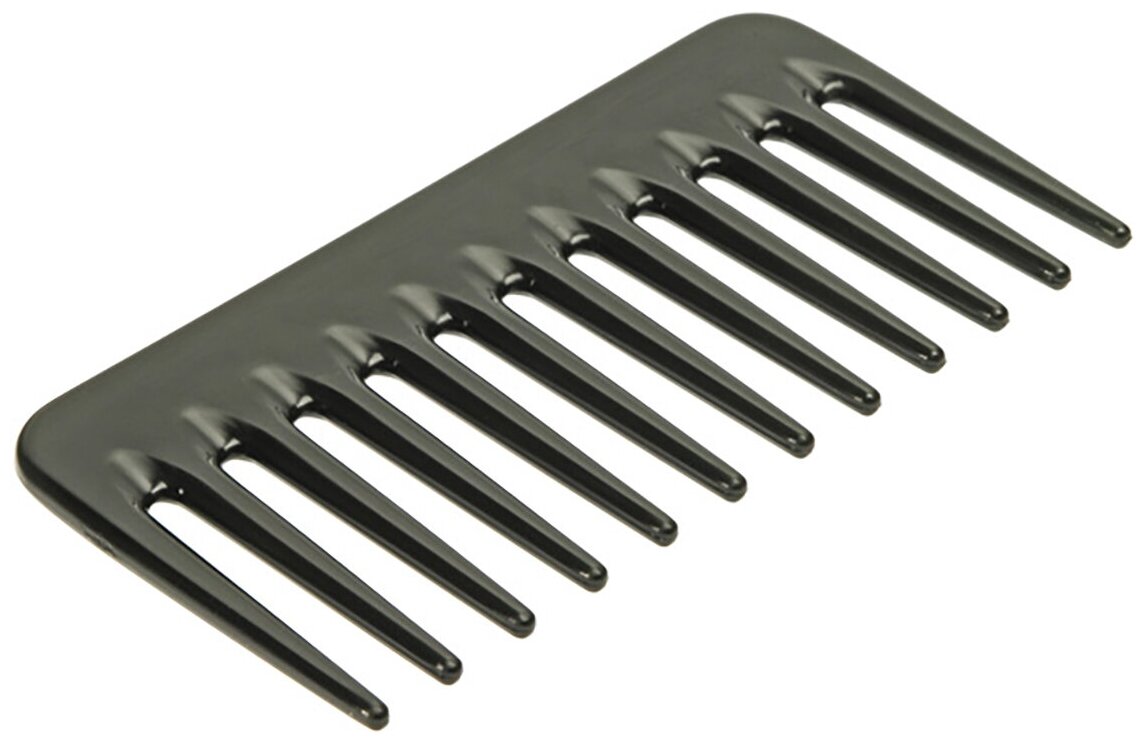 Расческа с редкими зубьями, представляющая собой изделие с одним рядом широких зубцов, расположенных на довольно большом расстоянии друг от друга, станет незаменимой для девушек с густыми кудрявыми волосами. Она прекрасно разделяет локоны, не нанося им никакого ущерба.Расческа с широкими зубьями