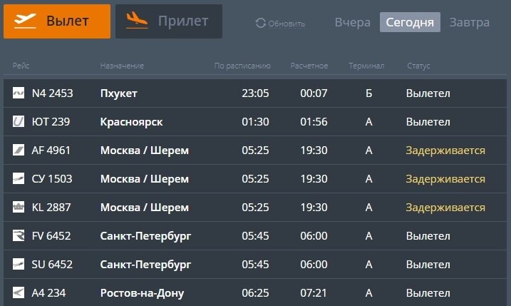 Аэропорт Емельяново (Красноярск) онлайн табло вылета и прилета