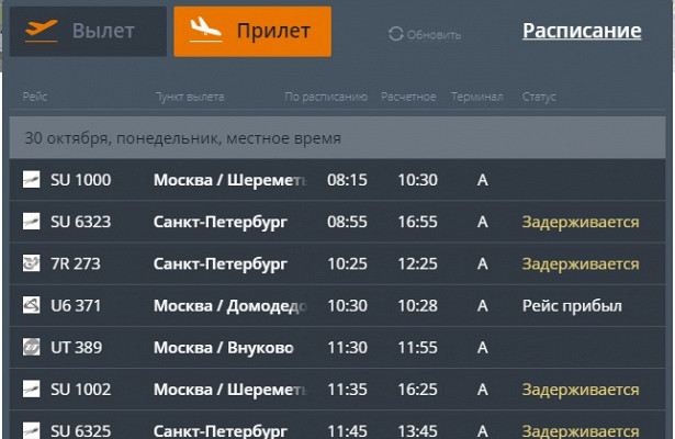 | 18:25 | Москва | SU 1843 Аэрофлот | |