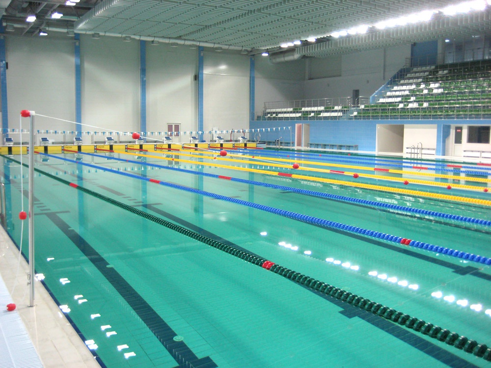 Количество дорожек обычно бывает от 5 до 10. По центру каждой дорожки на дне, а также на торцах ванны делается разметка для того, чтобы пловцам легче было плыть без отклонений от прямолинейного курса.