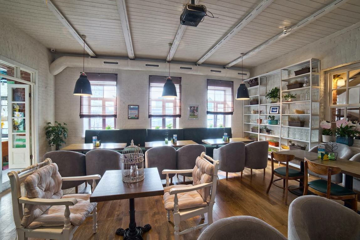 У ресторана — роскошная летняя веранда с собственным баром, утопающая в зелени, состоящая из нескольких уютных зон с плетеной мебелью и удобными лавочками вдоль одной из стен ресторана.