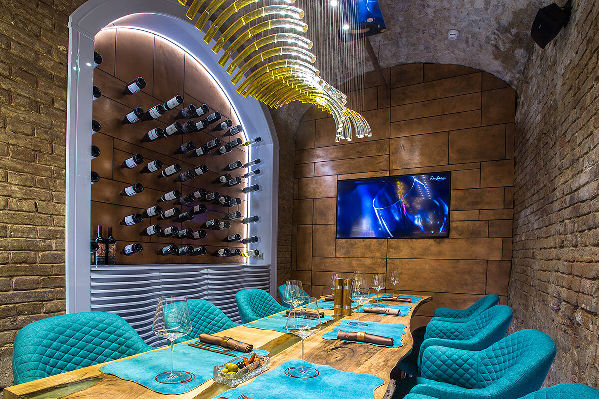 Особое внимание уделено бокалам, в которых подаются вина, и сохранности вин при их розливе. В ресторане используют систему Coravin и Enomatic, а для побокальных позиции игристых и шампанских вин используется диспенсер Bermar Le Verre de Vin Tower (Великобритания), использующий в своей работе баллоны с пищевым углекислым газом — CO2. Система позволяет сохранить игристое вино длительное время в идеальном состоянии.
