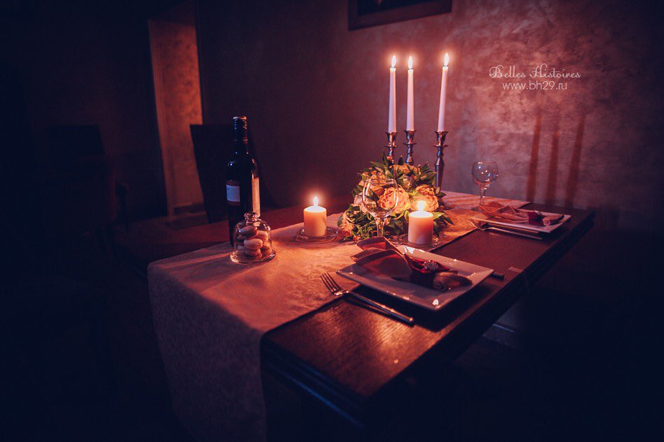 Для полноценной романтической обстановки — бронируем столик в углу зала около окна. Если он занят, то просто около окна. Просим официанта поставить свечу и рыбку на свой стол, и приходим в назначенное время.