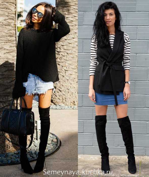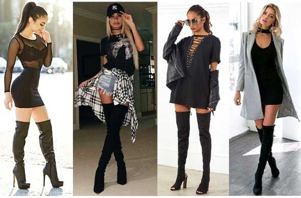 Чтобы выглядеть в сапогах-чулках стильно, необходимо подбирать одежду, которая не содержит даже намека на сексуальность. Поэтому категорически исключаются:
