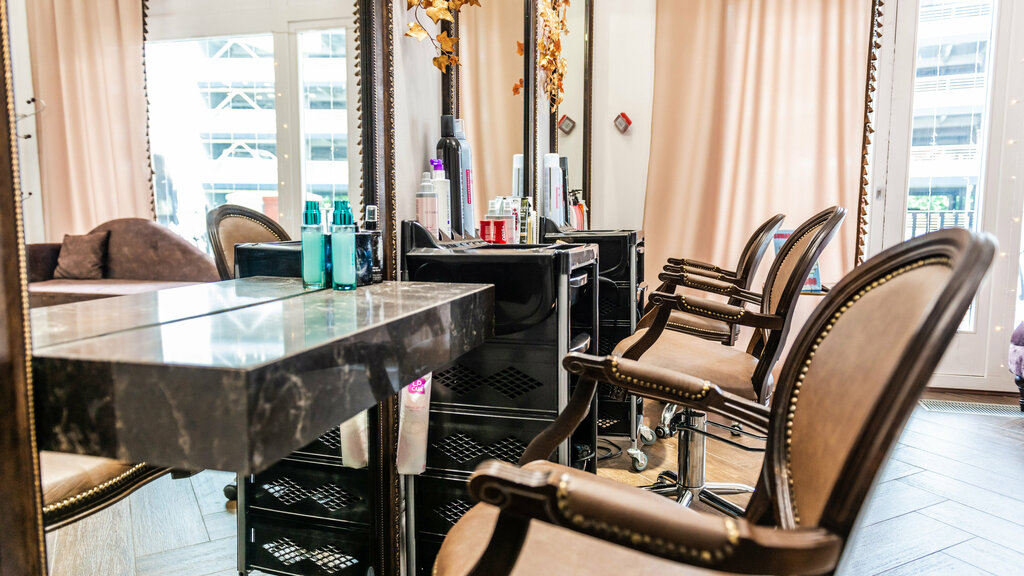 Помимо трех парикмахерских кресел, здесь есть зона для совмещенного маникюра и педикюра, где вы можете посмотреть фильм на 52-дюймовом экране или поиграть на Playstation с соседом во время процедур.