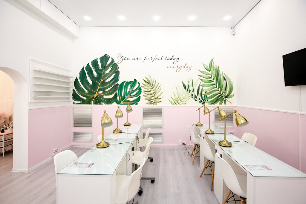 Зону маникюра и педикюра следует оформлять теплыми и дружелюбными цветами. Избегайте оттенков красного, они ассоциируются с кровью и болезненными ощущениями.