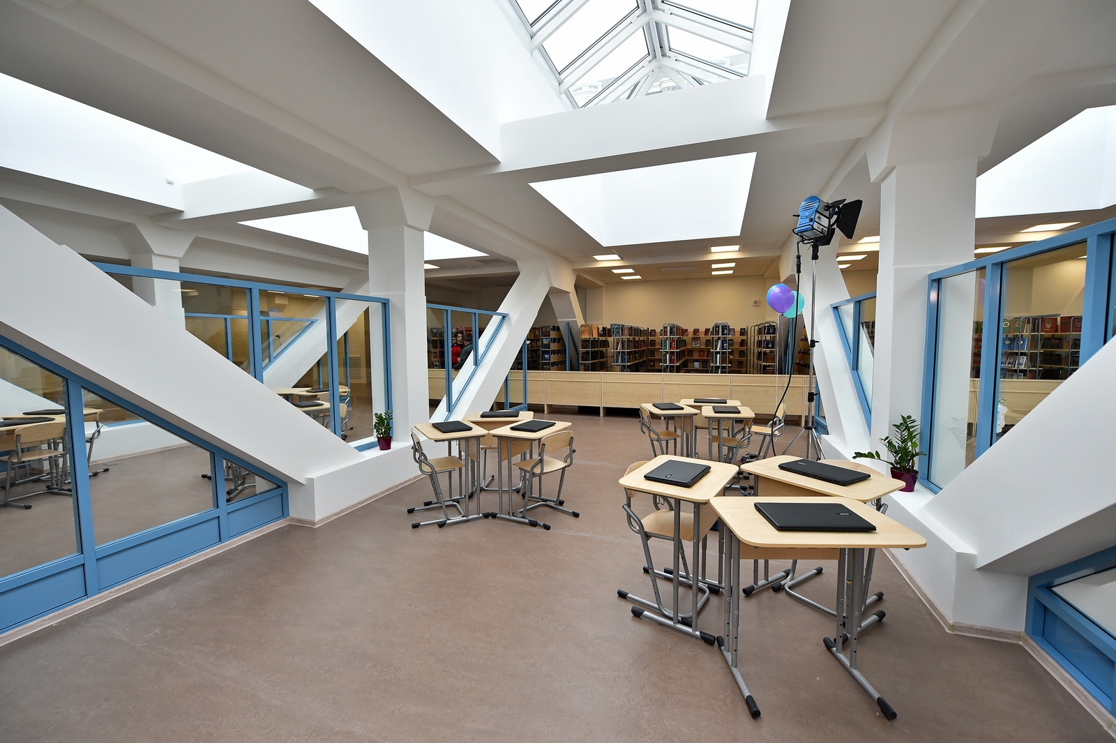 Есть четыре кабинета иностранного языка, две мастерские, кабинет технического черчения и рисования. В школьной библиотеке предусмотрены читальный зал и медиатека.