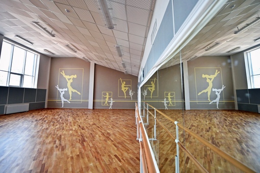 Театральный зал школы — тоже самый большой в России, на 1040 мест — оборудован современной акустической системой и профессиональным осветительным оборудованием.