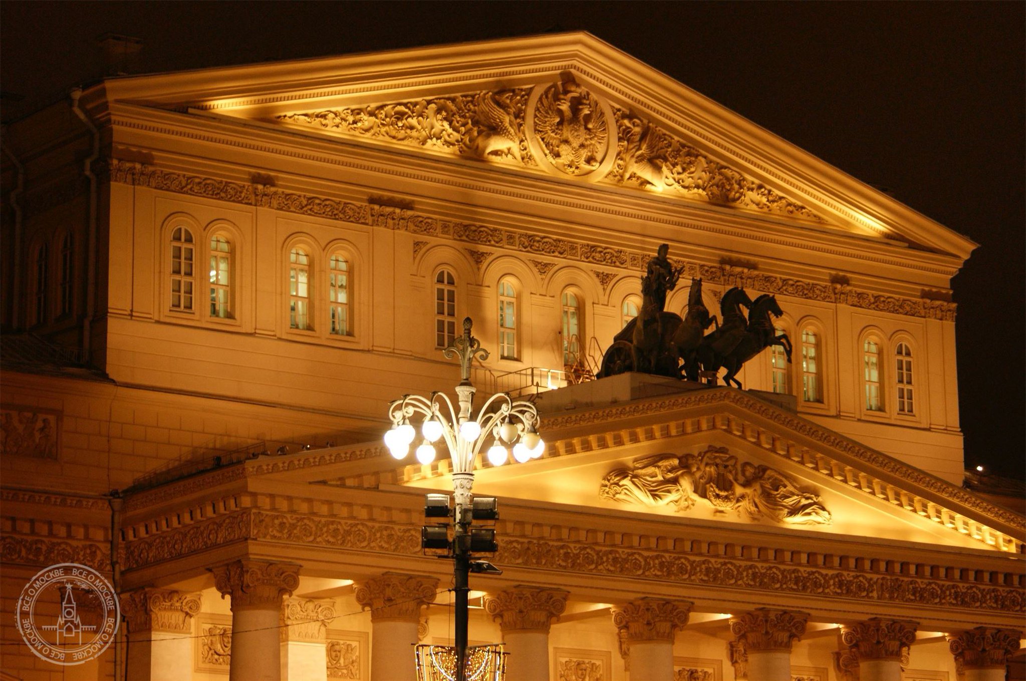 Самый старый и самый известный в Москве театр, Большой театр, основанный в 1776 году является домом для всемирно известных оперных и балетных постановок. Полностью перестроенный после пожара в 1856 году, это грандиозное здание является шедевром русского неоклассицизма, в том числе входное крыльцо с восемью колоннами, увенчанное конной колесницей Аполлона, покровителя искусств. Блестящий пятиуровневый интерьер богато украшен красной бархатной мебелью, золотом деталями и люстрами, а размер зрительного зала делает его одним из крупнейших театров в мире. В Большом театре проходили самые известные в мире премьеры, в том числе «Лебединое озеро», «Спартак» и концерты Рихарда Вагнера.
