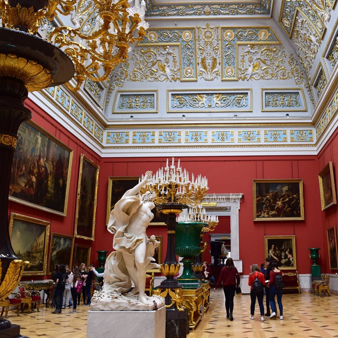В 350 залах музея вы найдете скульптуры и предметы прикладного искусства, коллекцию нумизматики, археологические памятники, и конечно, великие произведения искусства. В числе которых такие шедевры, как «Возвращение блудного сына» Рембрандта, «Апостолы Петр и Павел» Эль Греко, «Мадонна с младенцем», Леонардо да Винчи и другие не менее знаменитые работы художников. Стоит также увидеть галерею портретов династии Романовых и Лоджии Рафаэля, которые являются копией галереи из дворца Папы Римского в Ватикане. Кроме того, Эрмитаж знаменит своими кошками, которые живут в музее и защищают произведения искусства от грызунов.
