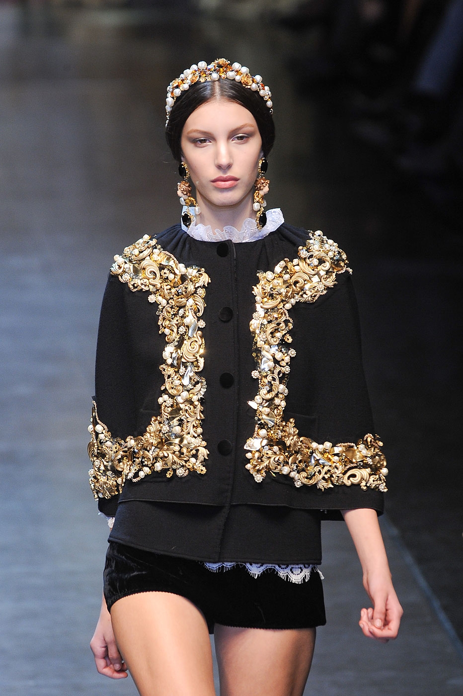 Золотая вышивка в духе викторианской эпохи может встретиться и на куртках с приталенным силуэтом, и на пиджаках с откровенной линией декольте. В любом случае эти детали гардероба будут довольно сдержанными, поэтому вполне подойдут для включения в деловые образы.