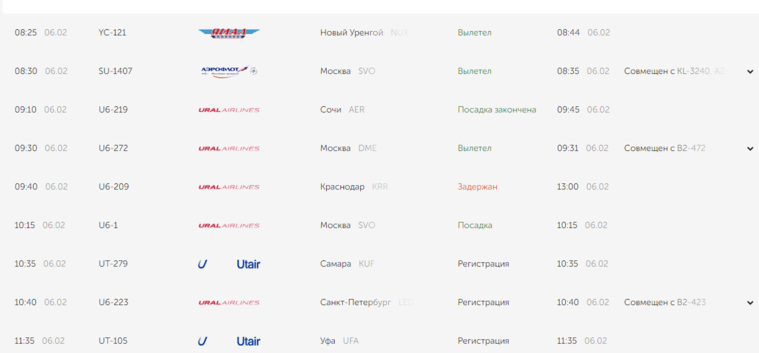 табло | Официальный сайт аэропорта Байкал (Улан-Удэ)