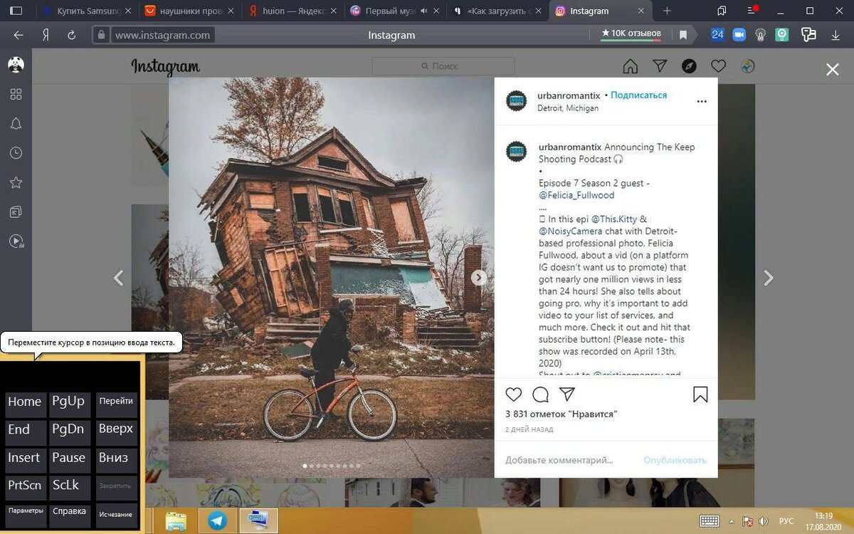 - Зайдите на Instagram.com и найдите сообщение, которое хотите закрепить.