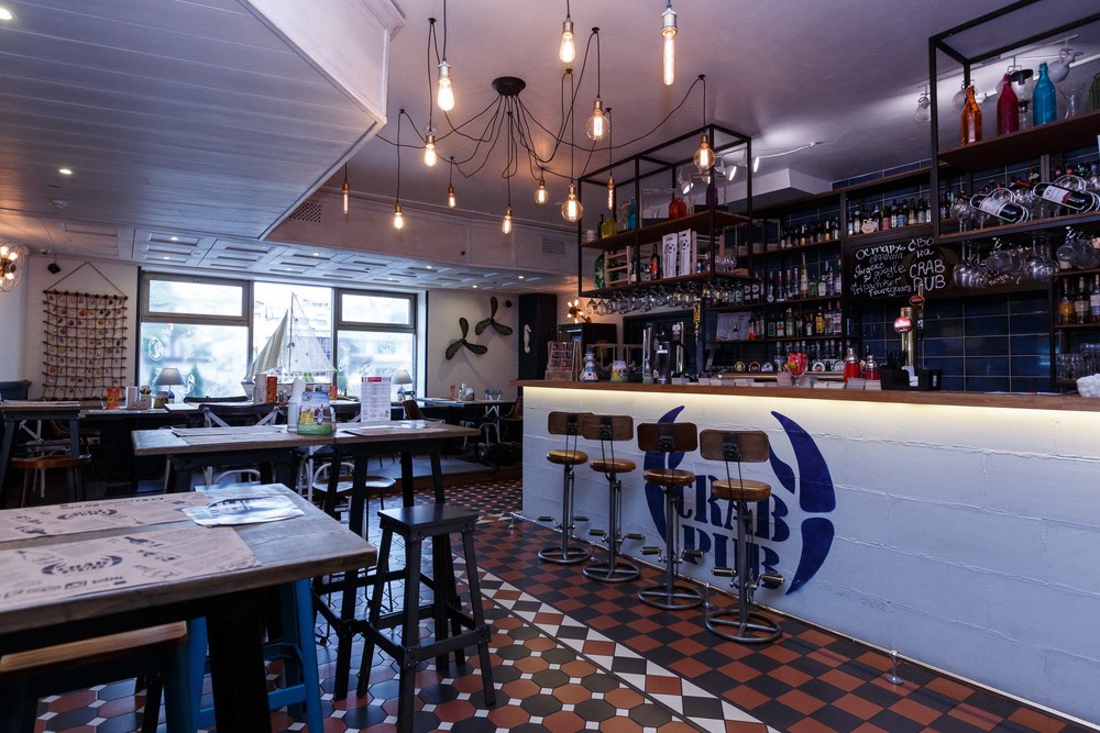 Crub Pub («Краб Паб») — одно из самых демократичных заведений в нашей подборке. Концепция гастропаба — свежие морепродукты по доступным ценам и простая и понятная барная и винная карты. В лишённом пафоса уютном заведении можно посмотреть матч, утолить жажду домашним лимонадом и попробовать одно из аппетитных блюд: например, лингвини с крабом, капрезе с фалангами краба, ролл «Калифорния» с крабом или бургер с котлетой из мяса краба.