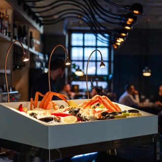 Кроме крабов в ресторане можно попробовать множество других морепродуктов, а если настроение или погода располагают к основательным красным винам, то в нашем меню есть, разумеется, и несколько мясных блюд.
