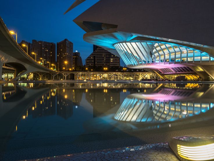 Комплекс, которому отведен берег бывшего русла реки Турия протяженность 2 км, включает в себя несколько потрясающих сооружений – ярких примеров авангардной архитектуры, спроектированных архитекторами Сантьяго Калатравой и Феликсом Канделой.