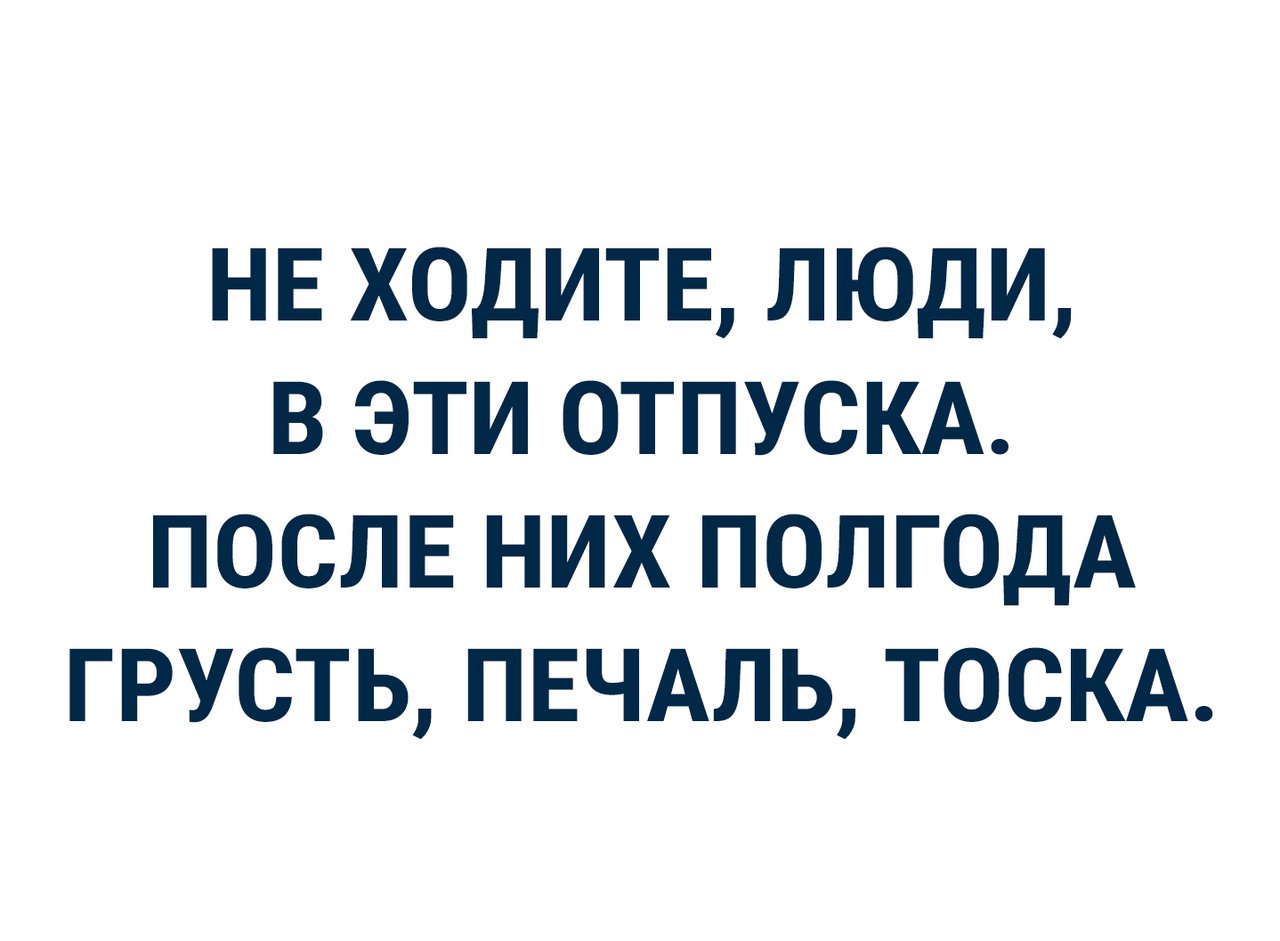 «Ситуация, при которой отпуск, связный с яркими впечатлениями, наслаждениями, счастьем, вдохновением, позитивом, меняется выходом на работу, может сопровождаться состоянием некоторой меланхолии и угнетенности. И эта меланхолия и угнетенность становится, в том числе, и причиной обращения к психологам за помощью. Это часто связано с тем, что период отпуска связан с расслабленностью и отдыхом, а иногда и с возможностью подумать об отношении к своей работе, к жизненному опыту, к месту своего жительства», — сказал ТАСС психолог, кандидат психологических наук Антон Сорин.