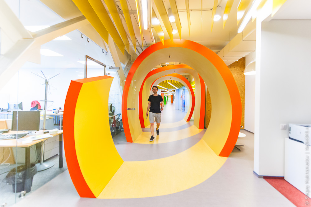 Яндекс известен своими яркими и необычными офисами, в них много деталей и цветов, а переговорные комнаты цепляют своими названиями — например, в Москве можно оказаться в «Оранжевом лете» или на «Седьмом небе». Офис привлекателен внешне, но сколько в нём внутреннего содержания — это огромное количество сервисов, разработок и умов, которые всё это создают.