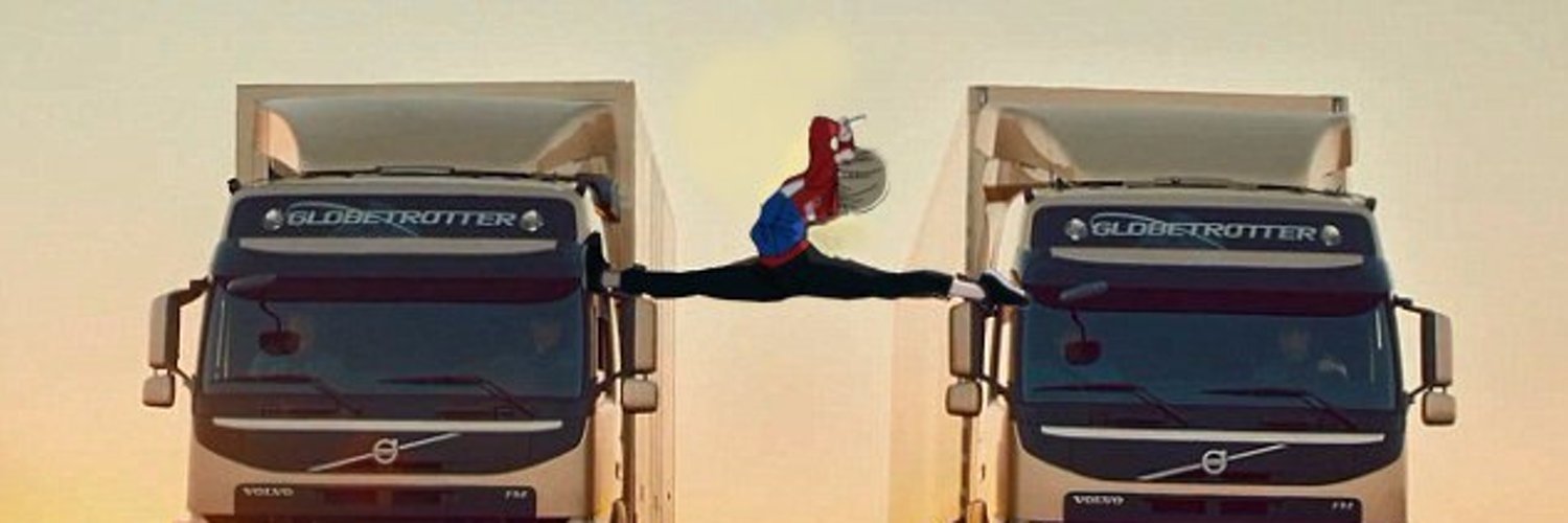 Звезда голливудских боевиков, постановщик боевых сцен и мастер карате Жан-Клод Ван Дамм (Jean-Claude Van Damme) снялся в необычной вирусной рекламе компании Volvo, где продемонстрировал свою фирменную растяжку. Технически сложный акробатический трюк Жан-Клод исполнил, стоя на боковых зеркалах заднего вида синхронно движущихся грузовиков. По мере движения трейлеры выполняют элемент расхождения, заставляя Ван Дамма волей-неволей повиснуть в воздухе на шпагате.