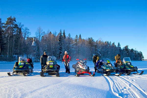 Вы преодолеете расстояние в 20 км и насладитесь захватывающими пейзажами карельского леса, укрытого мягким снежным покрывалом, и адреналином катания на снегоходах.