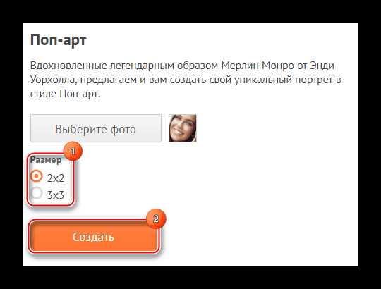 - На странице, где предлагается создать поп-арт, кликните по кнопке «Выберите фото».
