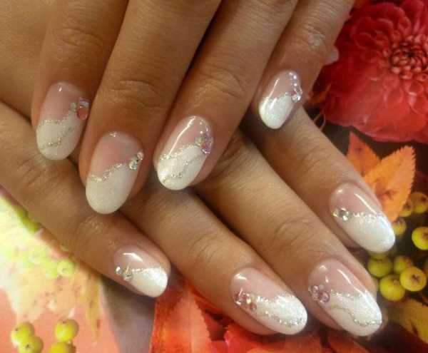 Еще один симпатичный вариант – нюдовый маникюр, выполненный лаками естественных оттенков. Для него можно использовать технику омбре, создавая плавный переход между более светлым и темным оттенком лака, а можно украсить его стразами или выделить несколько ноготков слайдерами.